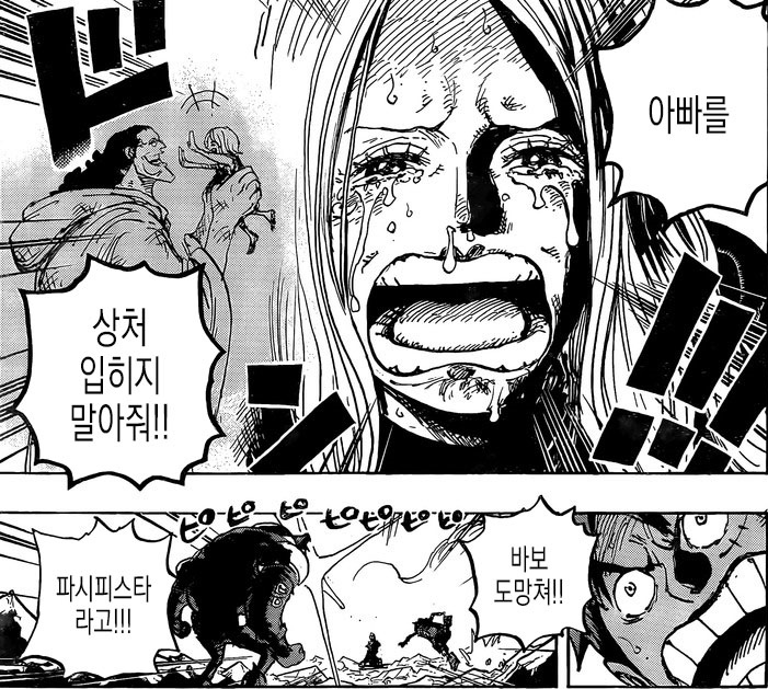 보니를 공격하려는 파시피스타를 보고 루피는 도망치라며 보니쪽으로 달려간다.