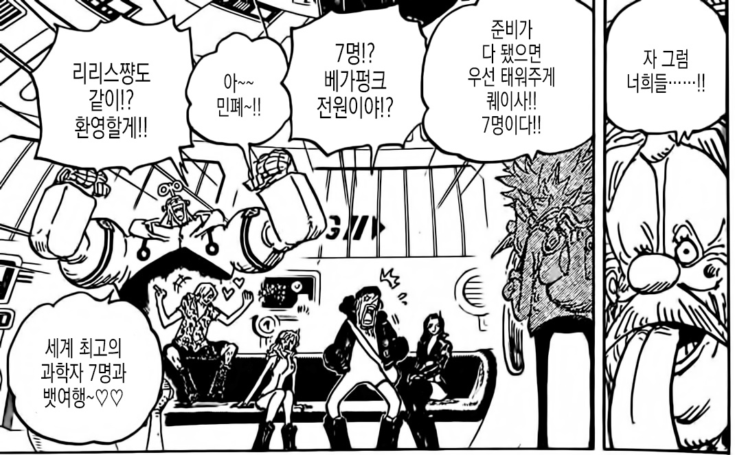 자신들 7명을 전부 루피의 배에 태워달라는 베가펑크