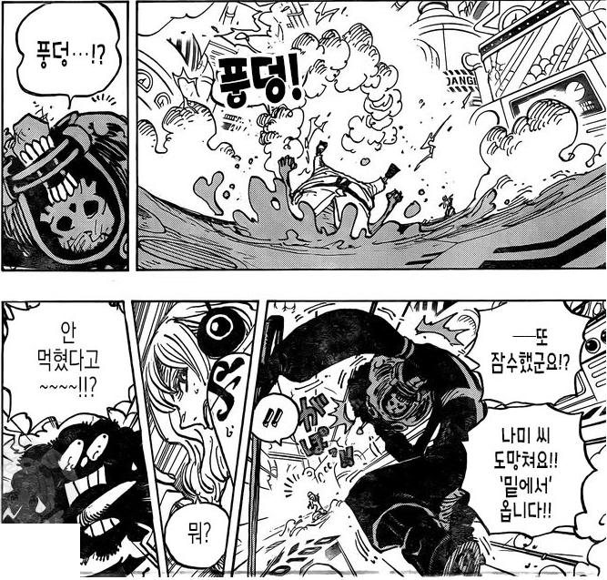 나미가 위험에 처하자 상디가 나타나 나미를 구한다.